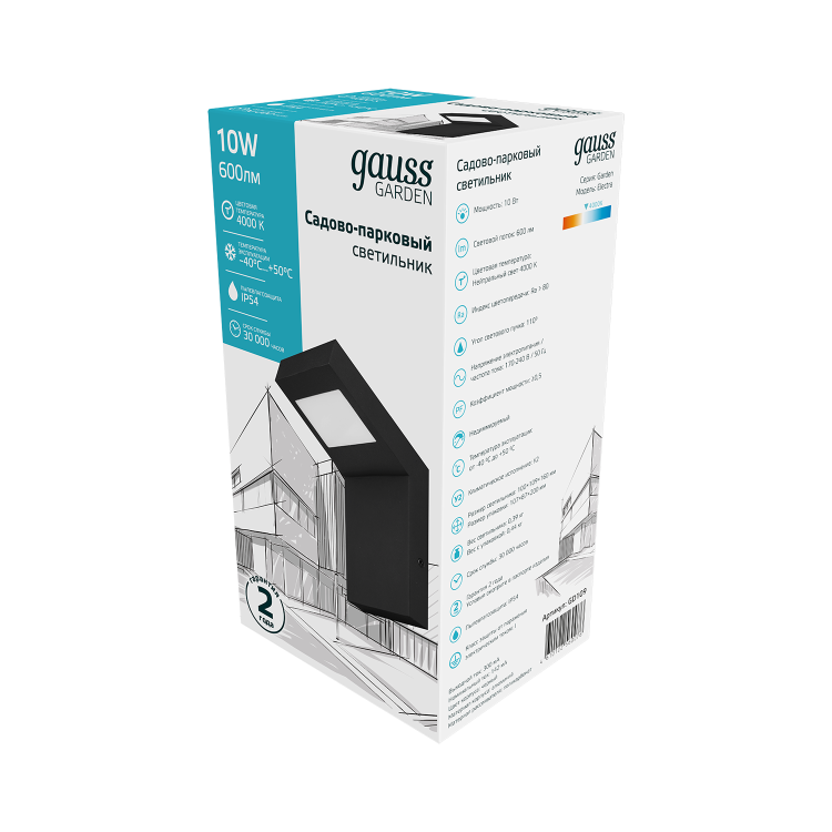 Светильник садово-парковый архитектурный Gauss Electra подвесной крепится на стену фасадов зданий, перголы, заборов, террасы. У него стильный современный минималистичный дизайн. Хорошо сочетается с другими вариантами осветительной линейки Gauss Electra такими как столб 58см и столб 78см. У светильника алюминиевый корпус с порошковым покрытием черного цвета. Прозрачный пластиковый рассеиватель, сила светового потока 600лм с цветовой температурой 4000К (нейтральный белый свет). Параметры защиты от внешней среды позволяют светильникам беспрерывно работать в условиях от -40 до+50°С.