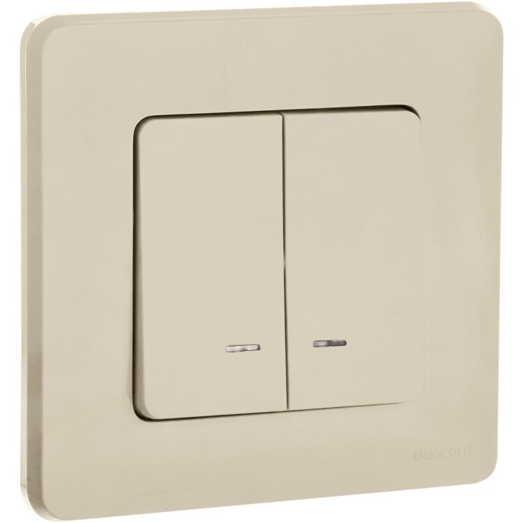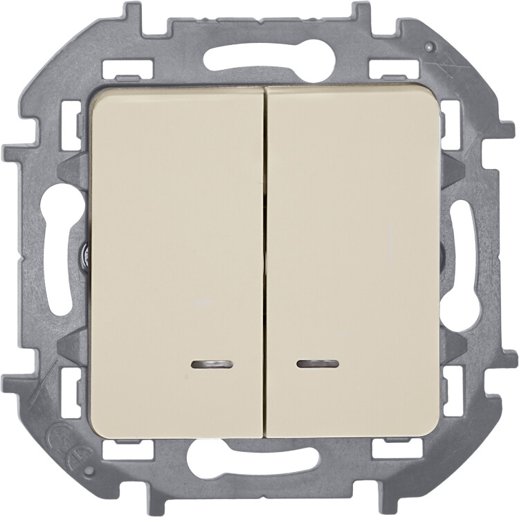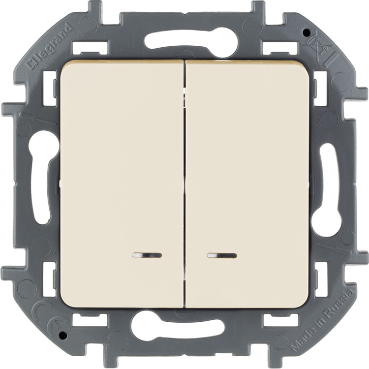 Выключатель двухклавишный с подсветкой/индикацией скрытого монтажа Legrand/Daccord Inspiria, цвет "Слоновая кость", номинальный ток 10АХ, напряжение ~250В, безвинтовые зажимы.
