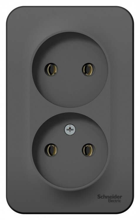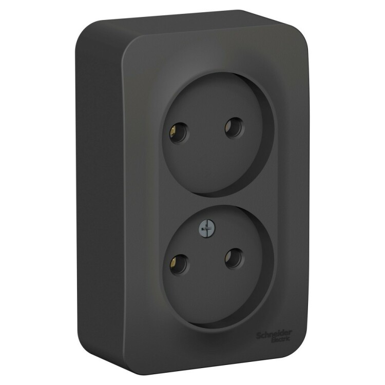 Розетка Systeme Electric (ранее Schneider Electric) BLANCA (антрацит, открытой установки) двухместная, без шторок и заземления, с изолирующей пластиной предназначена для сетей до 250В, на ток до 16А. Двухместная розетка позволяет подключить два устройства в одном месте. Она изготовлена из ABS-пластика, проста в установке и удобна в применении.