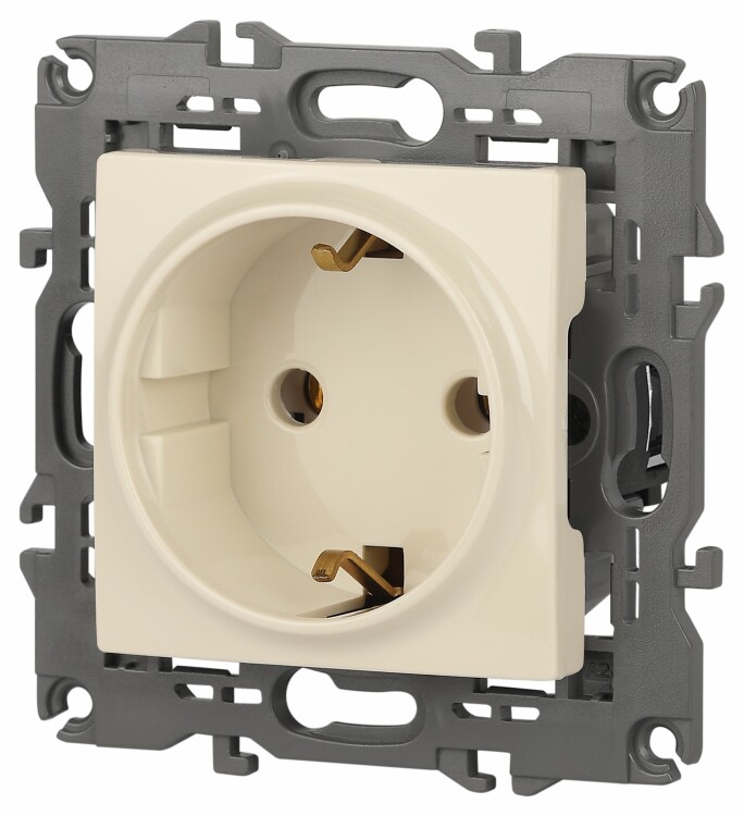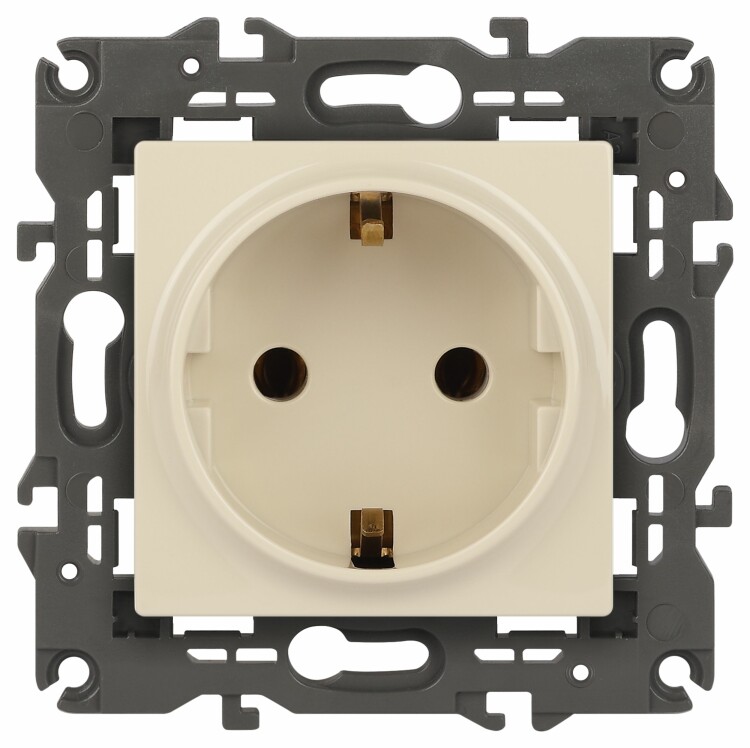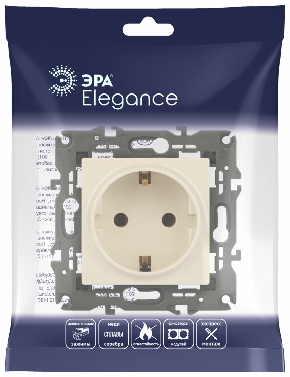 Розетка с заземлением Эра Elegance слоновая кость 14-2101-02. Оснащёна автоматическими клеммами для надёжной фиксации жил кабеля в механизме. Рамки приобретаются отдельно. Рамки Эра Elegance ПЛАСТИК: 1 пост 14-5001-хх, 2 поста 14-5002-хх, 3 поста 14-5003-хх, 4 поста 14-5004-хх, 5 постов 14-5005-хх; СТЕКЛО: 1 пост 14-5101-хх, 2 поста 14-5102-хх, 3 поста 14-5103-хх, 4 поста 14-5104-хх; МЕТАЛЛ: 1 пост 14-5201-хх, 2 поста 14-5202-хх, 3 поста 14-5203-хх, 4 поста 14-5204-хх; ДЕРЕВО: 1 пост 14-5301-хх, 2 поста 14-5302-хх, 3 поста 14-5303-хх, 4 поста 14-5304-хх (хх - код цвета: 00-прозрачный, 01-белый, белёный дуб, 02-слоновая кость, 03-алюминий, 04-шампань, 05-чёрный, чёрное дерево, 07-ясень, 09-дуб, 10-венге, 11-клён, 14-медь, 21-жёлтый, 22-оранжевый, 23-красный, 25-бордо, 26-лайм, 27-зелёный, 28-голубой, 29-синий, 30-розовый, 31-мокко, 32-серый, 41-сталь, 42-титан).