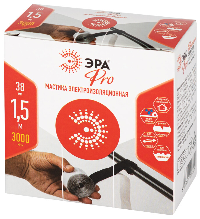 ЭРА Изолента PRO PROMAS38 Мастика электроизоляционная 38мм х 1,5м толщина 3000мкм черная