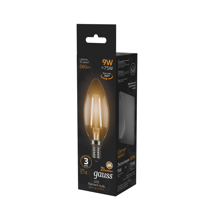 Светодиодные филаментные лампы GAUSS - это новейшие технологии в светотехнике. Лампы имеют привычный вид классических ламп накаливания, освещают пространство на 360о и дают больше света по сравнению с обычными светодиодными лампами за счет прозрачной колбы. Идеально подходят для хрустальных люстр и открытых светильников, а также для реализации дизайнерских решений, где важен вид классических ламп накаливания.