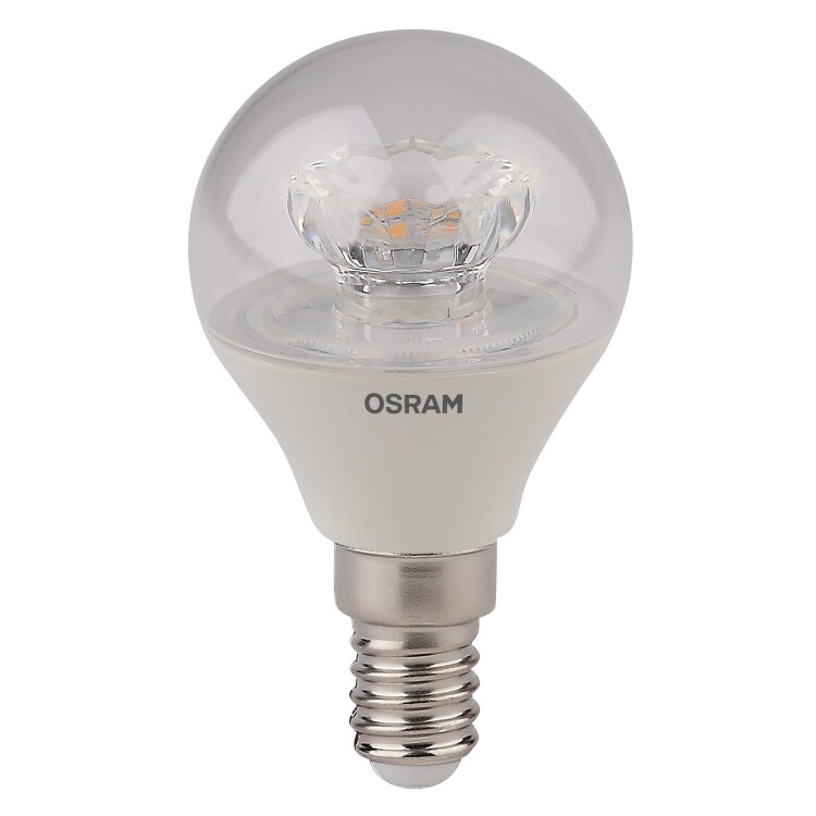 Лампа светодиодная OSRAM LED Star P, 470 лм, 5,4Вт (замена 40Вт), 3000K (теплый белый свет). Цоколь E14, колба P, угол пучка 240°. Исполнение колбы прозрачное, пластик. Напряжение питания 220-240В. Товар сертифицирован