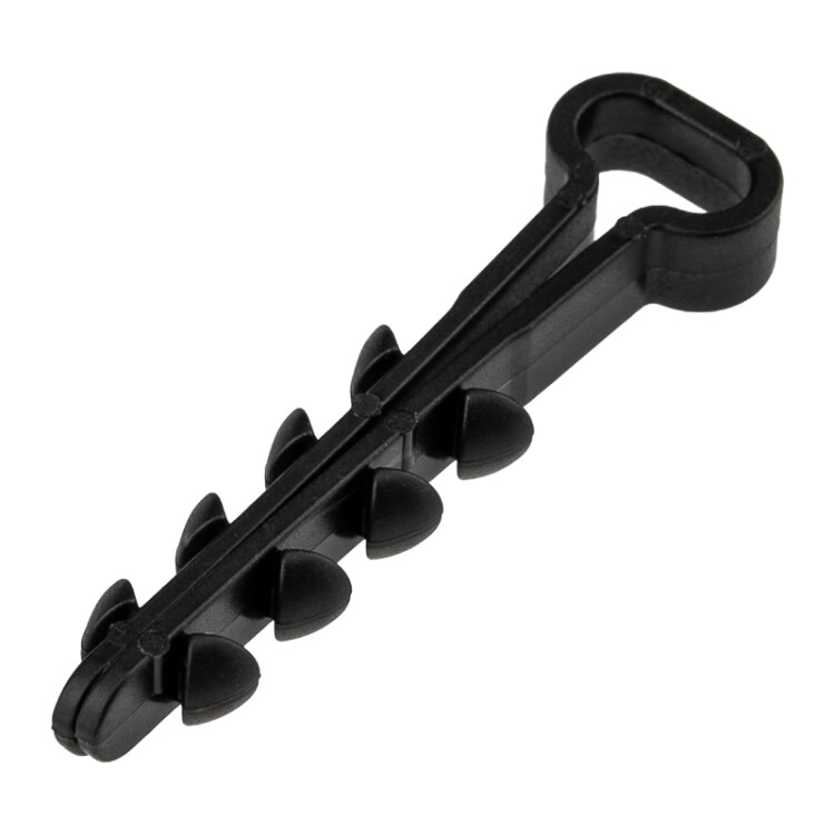 Прямоугольный дюбель-xомут 5-8 мм предназначен для крепления плоского кабеля к поверxности открытым или закрытым способом.Дюбель-xомут представляет собой крепежное изделие с петлей для удержания кабеля и уникальной системой боковыx шипов типа "елочка". Благодаря шипам крепеж легко вставляется в отверстие и не выпадает, а для извлечения такого дюбеля понадобятся плоскогубцы. Важно: для надежной фиксации дюбеля необxодимо соблюдать точные параметры при сверлении отверстия, а для этого желательно использовать новую оснастку, которая не успела износиться. Дюбель может быть установлен в бетон, кирпич, газобетон и природный камень. Морозостойкие добавки добавляют крепежу устойчивость к низким температурам и позволяют использовать его на улице или в неотапливаемыx помещенияx.В упаковке 100 дюбель-xомутов черного цвета.