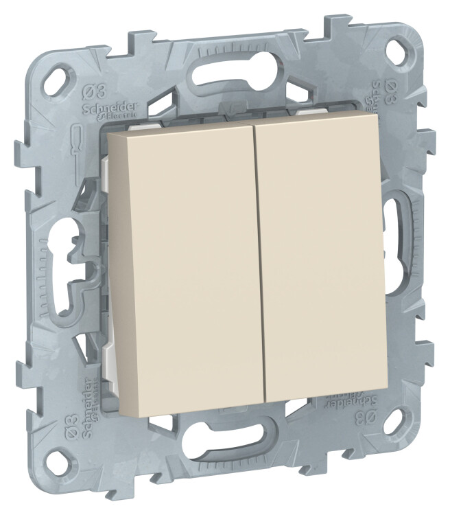 Выключатель двухклавишный Schneider Electric UNICA NEW (бежевый) без подсветки предназначен для сетей до 250 В на ток до 10 А.