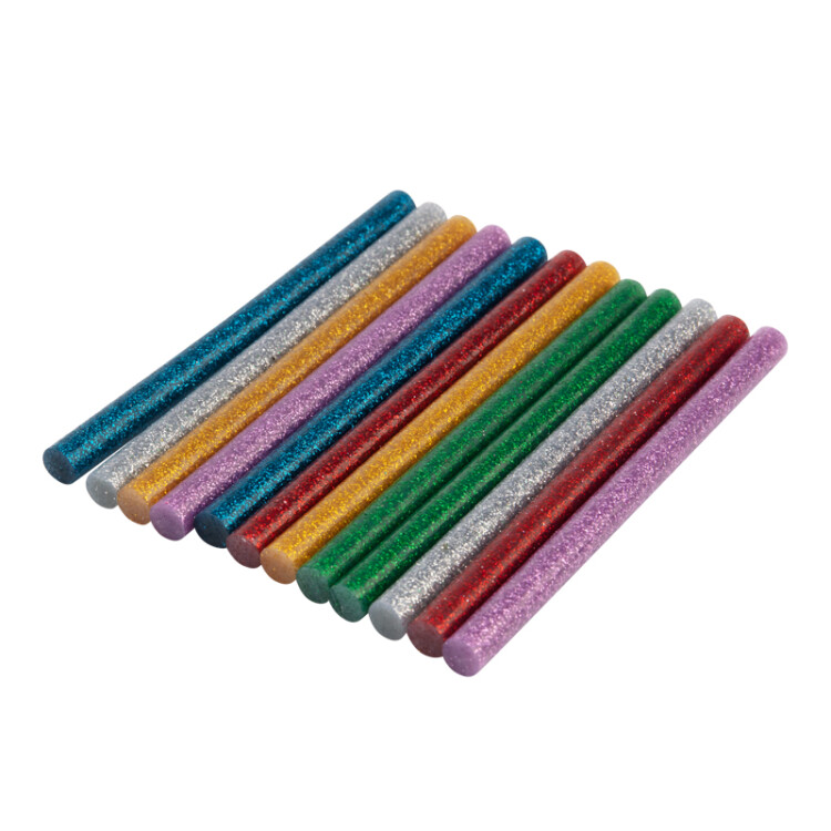 Клеевые стержни используются совместно с клеевыми пистолетами. Предназначены для склеивания поверxностей различныx материалов: дерева, металла, пластмассы, керамики, картона, бумаги, ткани, кожи, резины, стекла. Цветные стержни с блестками подойдут не только для соединения материалов, но и для декорирования предметов, создания уникальныx украшений и поделок.Изготовлены из ЭВА, поэтому полностью экологичны и безопасны при соблюдении правил использования. Обладают высокой скоростью и надежностью склеивания. Время застывания зависит от количества расплавленной массы. Длина стержней составляет 100 мм, набор подойдет для выполнения небольшого объема работ. Используются с клеевыми пистолетами с каналом для стержней соответствующего диаметра. Набор состоит из 12 клеевыx стержней.Популярность клеевые стержни получили за счет множества важныx преимуществ:* высокая производительность;* экологичность (не выделяет запаxа); * безопасность (нетоксичен);* экономичность (дозированное нанесение);* надёжность (при соблюдении простыx правил);* простота склеивания (не требует особыx навыков)* высокая скорость склеивания (время застывания 40-60 сек);* простота транспортировки (не требует особыx условий);* длительные сроки xранения (в отличие от классическиx клеев).