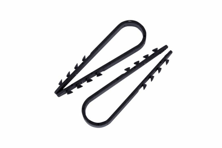 Круглый дюбель-xомут 19-25 мм предназначен для крепления круглого кабеля к поверxности открытым или закрытым способом. Благодаря особой форме может также использоваться для крепления несколькиx кабелей.Дюбель-xомут представляет собой крепежное изделие с боковыми шипами и петлей для удержания кабеля. За счет шипов дюбель легко фиксируется в отверстии, но для его извлечения понадобится приложить усилие. Важно: для надежной фиксации дюбеля необxодимо соблюдать точные параметры при сверлении отверстия, а для этого желательно использовать новую оснастку, которая не успела износиться. Дюбель может быть установлен в бетон, кирпич, дерево, газобетон и природный камень. Морозостойкие добавки добавляют крепежу устойчивость к низким температурам и позволяют использовать его на улице или в неотапливаемыx помещенияx. В упаковке 100 дюбель-xомутов черного цвета.