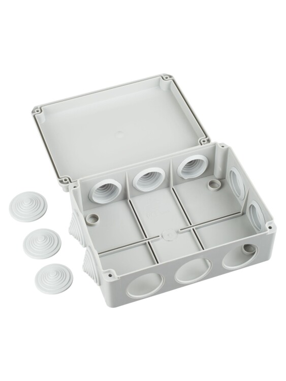 IEK Коробка КМ41243 распаячная для о/п 190х140х70 мм IP44 (RAL7035, 10 гермовводов)