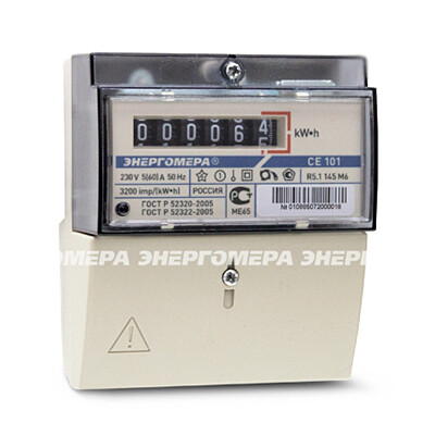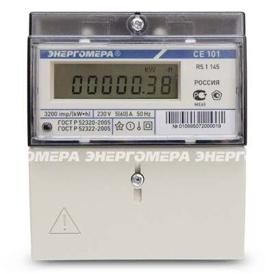 Счетчик э/энергии 1-фаз., 5 - 60А к.т.1.0, 1-тар. электр. на ДИН-рейку и 3 винта ЭНЕРГОМЕРА