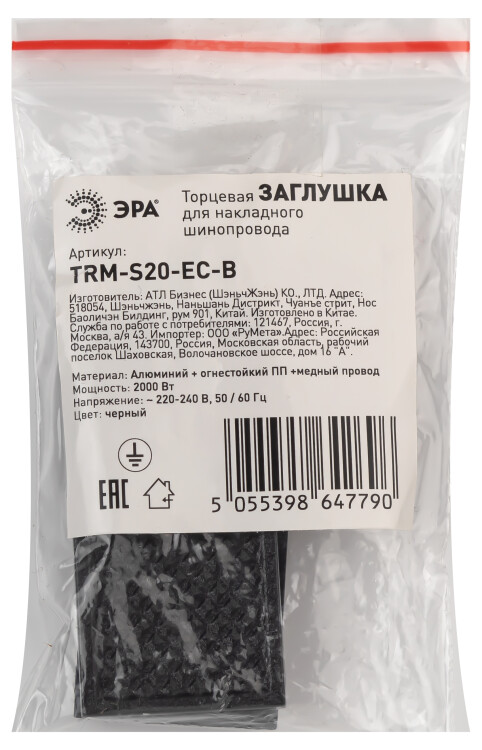 ЭРА Заглушка TRM-S20-EC BK для магнитного шинопровода пластиковая черная для системы NOVA