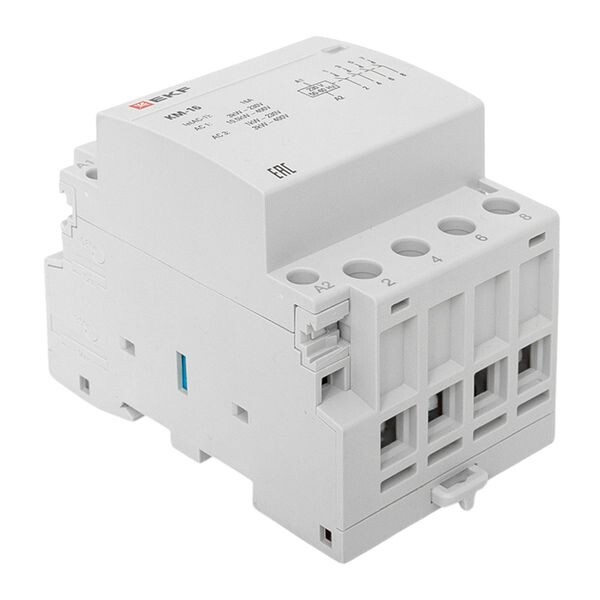 Модульные контакторы представляют из себя контактор в классическом корпусе модульного оборудования. Он состоит из неподвижных контактов, подвижных контактов, которые закреплены в подвижной части магнитной системы. Неподвижная часть магнитной системы закреплена жестко в корпусе КМ. Пружина препятствует смыканию контактов. При подаче напряжения на катушку управления в магнитной системе контактора возникает магнитное поле, которое, преодолевая сопротивление пружины, смыкает магнитную систему и замыкает контакты. При отключении напряжения с катушки управления пружина размыкает контакты. Возможна коммутация алюминиевым и медным проводом.