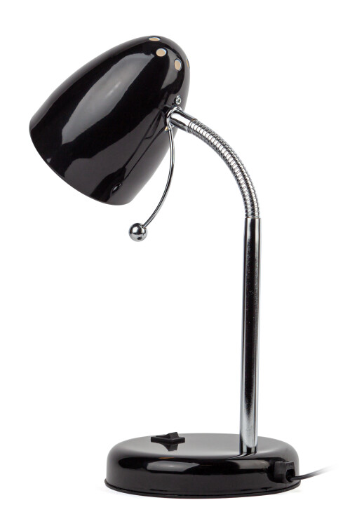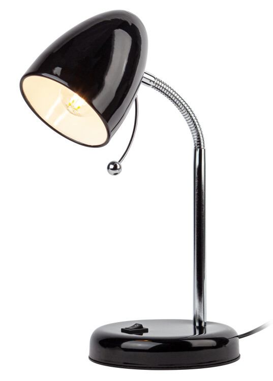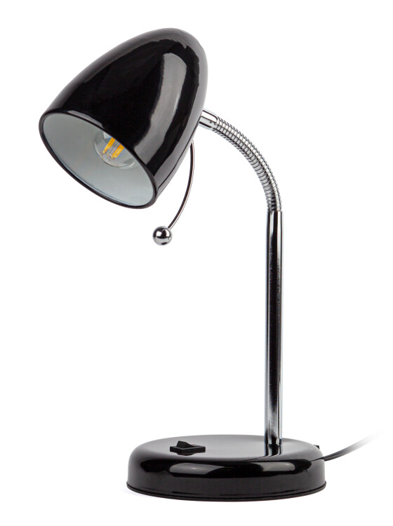 Настольный светильник ЭРА N-116-Е27-40W-BK с цоколем Е27 компактного размера для удобного размещения на столе. Может использоваться с лампой накаливания, компактной люминесцентной лампой (КЛЛ) или светодиодной (LED) лампой. У светильника металлические стойка и плафон, выключатель на основании. Высота расположения плафона регулируется сгибающейся стойкой, направление света - наклоном и поворотом плафона в любом направлении.