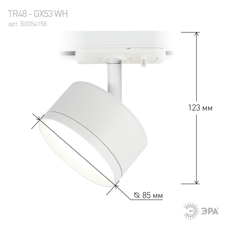 Однофазный трековый светильник под лампу с цоколем GX53 с плоским трековым адаптером. Корпус светильника выполнен из алюминия. Главной особенностью данной модели является компактный корпус, для такого вида светильников и утопленный трековый адаптер. Модель может быть достаточно яркой, при использовании ламп 12 ватт и создавать основное освещение, за счет широкого угла рассеивания GX53.