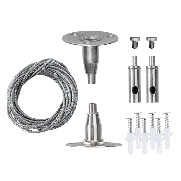В комплект PTR S-2.0m входит два крепления, винты и саморезы. Материал подвеса для трека PTR S-2.0m стальной трос с прорезиненным покрытием.
