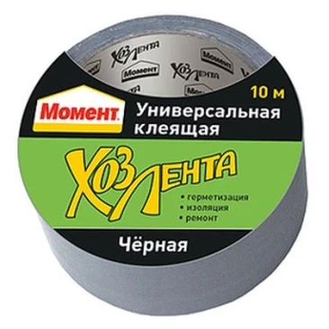 Лента клейкая универсальная Хозлента Момент 1690072 Черная 10м