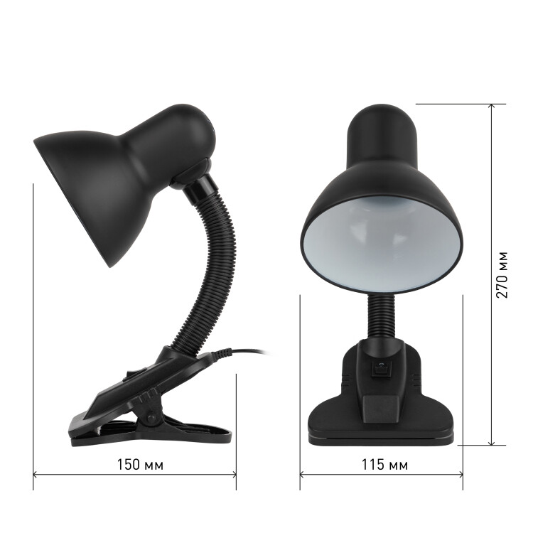 Металлический плафон. Направление света рег улируется гибкой стойкой, которая обеспечивает наклон и поворот плафона в любом направлении. Выключатель на прищепке. Классический дизайн.