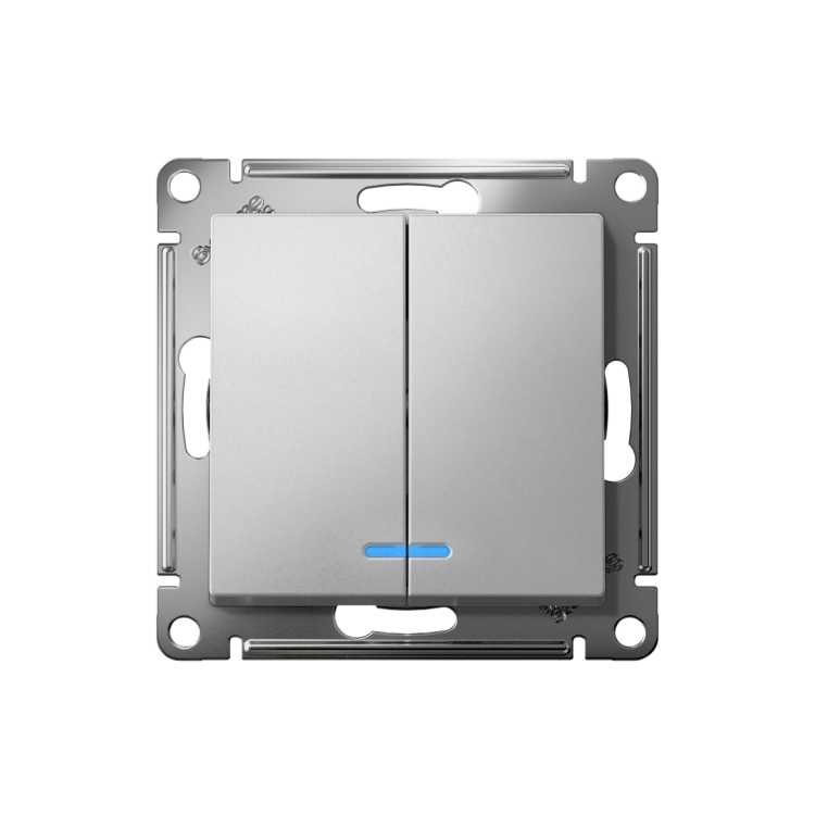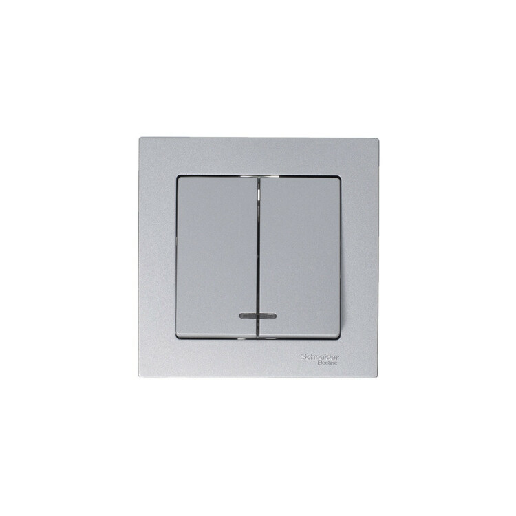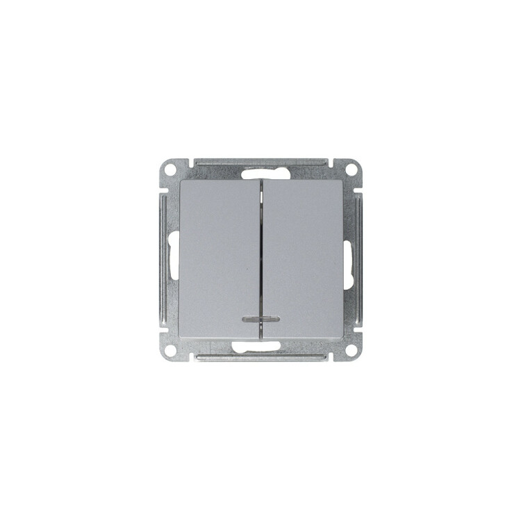 Systeme Electric AtlasDesign Алюминий Выключатель 2-клавишный с подсветкой, сх.5а, 10АХ, механизм