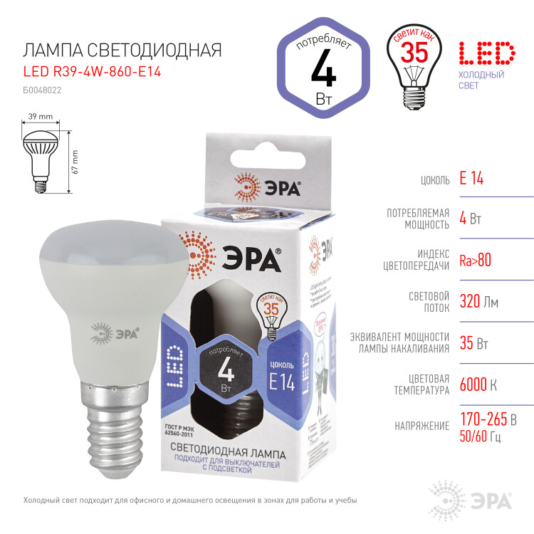 Экономичная светодиодная лампа ЭРА Серии Стандарт с отличными характеристиками для установки в люстры и все типы бытовых светильников - потолочные, настольные, бра. Бережёт электроэнергию, ярко светит, имеет долгий срок службы. Цветовая температура - холодный белый свет. Такое освещение бодрит, повышает работоспособность. Этот современный источник света создаёт комфортное и безопасное для глаз освещение.