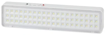 Светильник аварийный светодиодный. Область применения: Предназначен для освещения путей эвакуации, коридоров, проходов, запасных дверей; как эвакуационные или указательные светильники (при наличии пиктограмм).; 2 режима работы; время автономной работы 300 минут; наличие кнопки "ТЕСТ" для проверки работы в аварийном режиме. Гарантия:3 года.Диапазон рабочих температур:(+1+35). Класс энергоэффективности:A. Климатическое исполнение:УХЛ4. Преимущества:2 режима работы; время автономной работы 300 минут; наличие кнопки "ТЕСТ" для проверки работы в аварийном режиме.Цветовая температура:6500K. Материал корпуса:пластик. Габариты: 250x57x29мм. Потребляемая мощность:6Вт. Степень защиты от окружающей среды:IP20. Тип рассеивателя: прозрачный. Тип кривой: Д.Питающее напряжение светильника: 230Вт.