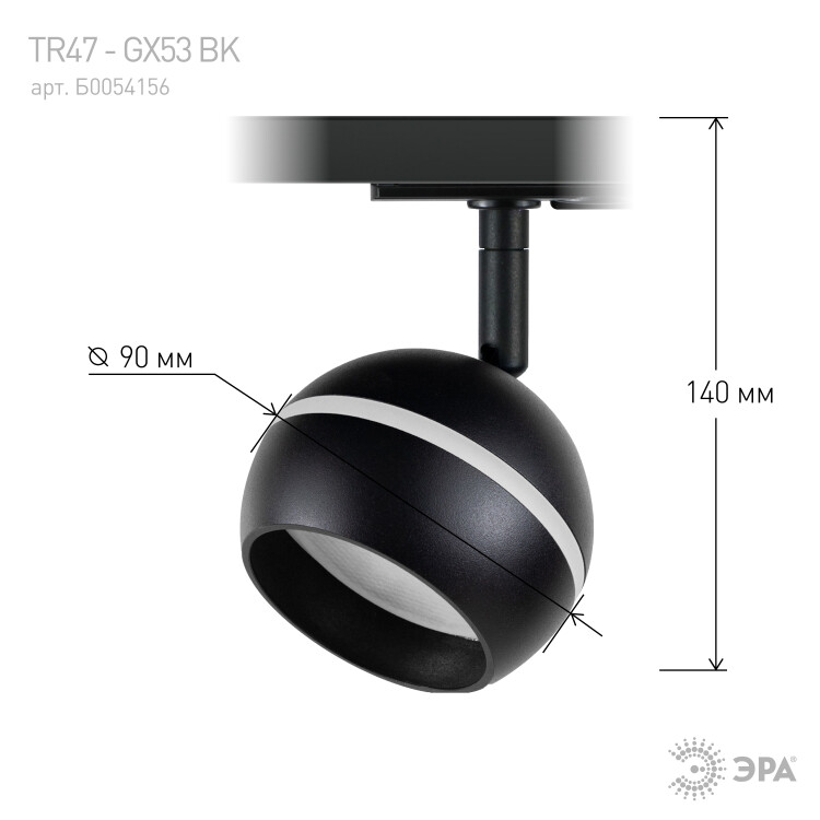 ЭРА Трековый светильник однофазный TR47-GX53 BK под лампу GX53 черный