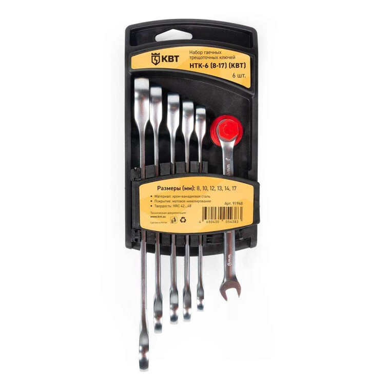 КВТ Набор гаечных комбинированных трещоточных ключей НТК-6 (8-17) серия КВТ-PROFESSIONAL