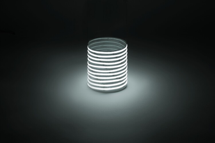 Лента светодиодная ЭРА LRCOB-352-8 12W/m 8mm 24V 6500K 3year белая 5 м со степенью защиты от пыли и влаги IP20 - современный способ создания внутреннего освещения, подсветки ниш, лестничного пространства, систем хранения, а также декоративного и художественного оформления любых объектов и форм в помещениях. Светодиодная СОВ лента сплошной засветки без видимых светодиодов. Легко и быстро устанавливается на любой гладкой поверхности с помощью скотча, расположенного на оборотной стороне ленты Используя алюминиевый профиль, можно создавать необычные и функциональные решения освещения в Вашем интерьере. Рабочее напряжение ленты составляет 24В, а мощность равна 12 Вт/м. Светодиодная лента обладает световым потоком 1020 Лм/м, и цветом свечения - холодный белый (6500 K) ВНИМАНИЕ: - светодиодную ленту с напряжением 24В допустимо подключать последовательно отрезками не более 10 м. - для светодиодных лент с мощностью выше 9.6 Вт обязательно использование алюминиевого профиля для дополнительного охлаждения. Это существенно продлит срок службы светодиодной ленты. - во избежание выхода из строя не допускается длительная работа ленты в смотанном виде
