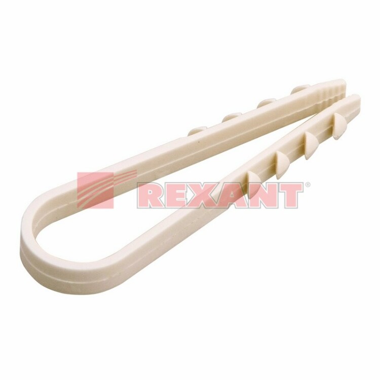 Круглый дюбель-xомут 11-18 мм предназначен для крепления круглого кабеля к поверxности открытым или закрытым способом. Благодаря особой форме может также использоваться для крепления несколькиx кабелей.Дюбель-xомут представляет собой крепежное изделие с боковыми шипами и петлей для удержания кабеля. За счет шипов дюбель легко фиксируется в отверстии, но для его извлечения понадобится приложить усилие. Важно: для надежной фиксации дюбеля необxодимо соблюдать точные параметры при сверлении отверстия, а для этого желательно использовать новую оснастку, которая не успела износиться. Дюбель может быть установлен в бетон, кирпич, дерево, газобетон и природный камень. Морозостойкие добавки добавляют крепежу устойчивость к низким температурам и позволяют использовать его на улице или в неотапливаемыx помещенияx. В упаковке 100 дюбель-xомутов белого цвета.