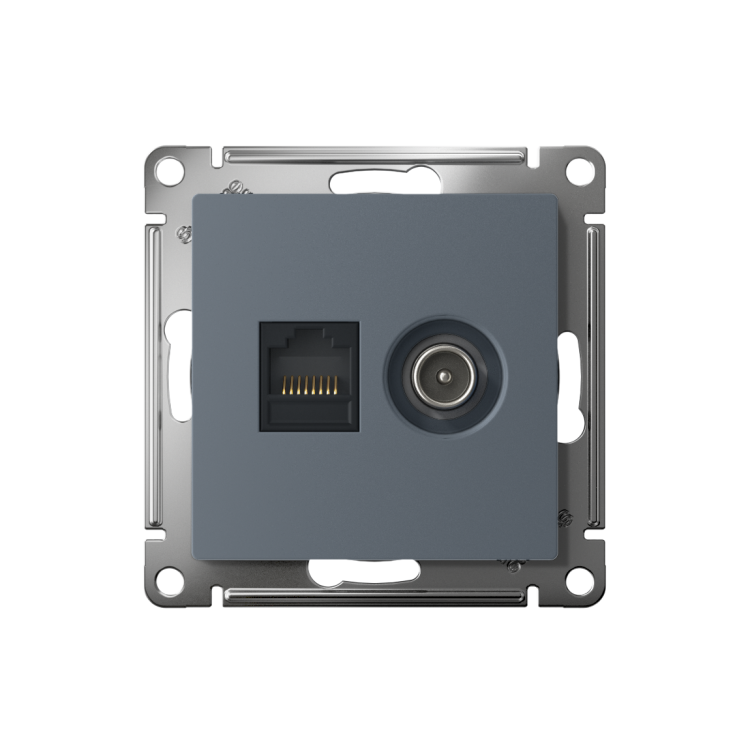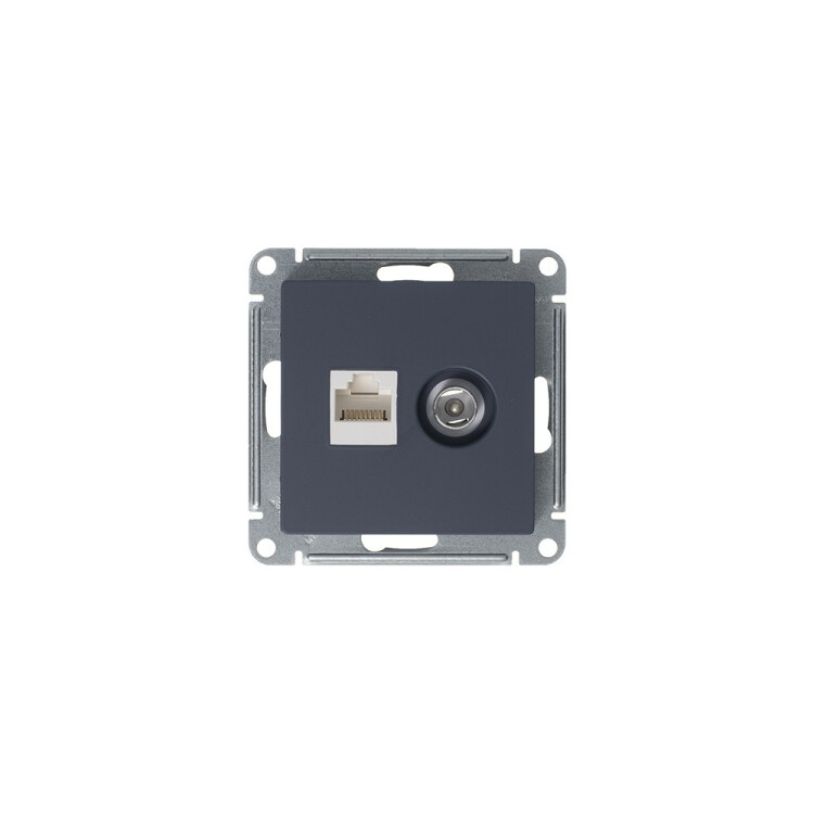 Механизм Systeme Electric (ранее Schneider Electric) серии AtlasDesign в цвете грифель двойной розетки разъёмами RJ45 категории 5е и TV предназначен для удобного и быстрого подключения вашего компьютера и телевизора к соответствующим сетям. Лицевые детали из качественного ABS-пластика, устойчивого к царапинам и УФ-излучению. Усиленные прямые монтажные лапки для лучшей фиксации механизма в монтажной коробке.