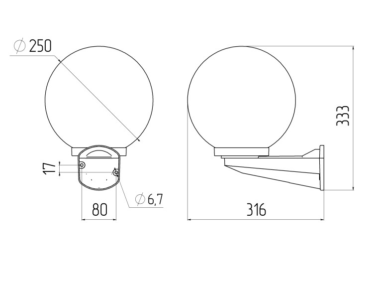 ЭРА Садово-парковый светильник НБУ 21-60-251 шар опаловый настенный IP44 Е27 max60Вт с датчиком d250mm
