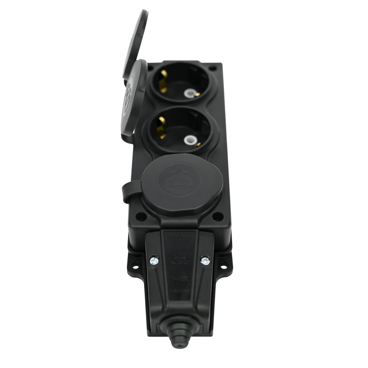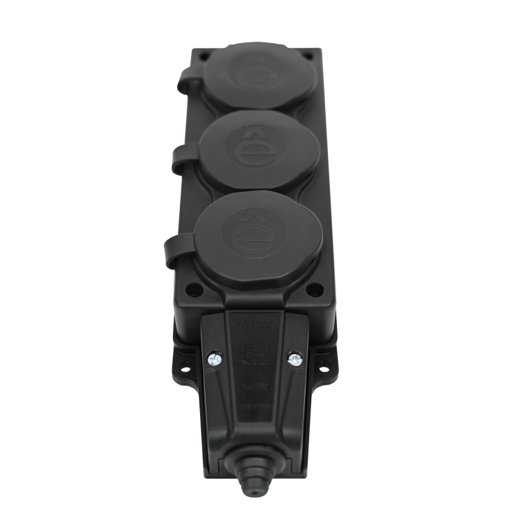 Systeme Electric MultiSet Черная Колодка 3х розетка 2К+З каучуковая 16А/250В IP44
