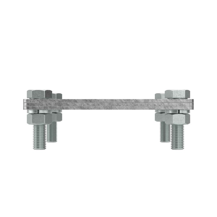 Соединитель "полоса-полоса" применяется для параллельного либо крестообразного соединения плоских проводников шириной 25-50 мм. Материал - горячеоцинкованная сталь.