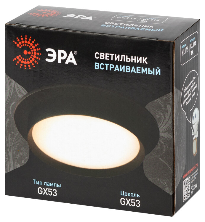 Светильник встраиваемый круглый под лампу GX53 черный IP20 KL115 BK ЭРА