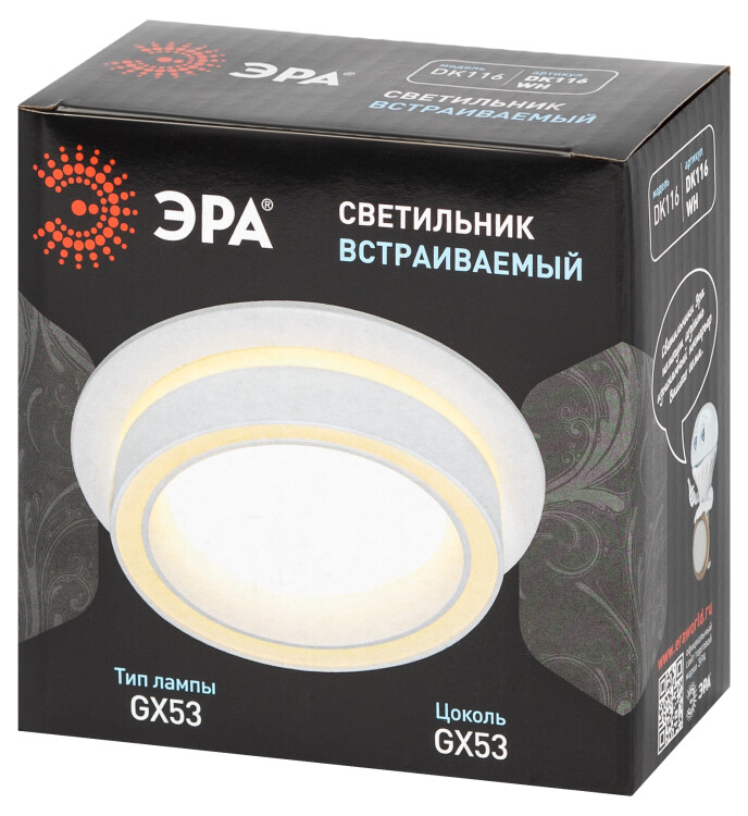 Встраиваемый светильник ЭРА DK116 WH — это сочетание лаконичного дизайна, высокого качества и функциональности. Изготовлен из прочного алюминия с матовым покрытием и отличается строгой эстетикой. Классический белый цвет делает модель подходящей для любого интерьера: от классического до модерна. В конструкции предусмотрена прозрачная часть корпуса, через которую мягко проходит свет. Светильник выглядит выразительно даже в выключенном состоянии, а при включении наполняет пространство приятным рассеянным светом. Предназначен для ламп с цоколем GX53 и работает от безопасного напряжения 220 В. Компактные размеры (105*44 мм) делают ЭРА DK116 WH идеальным выбором для установки в подвесные и натяжные потолки. Подходит для жилых и коммерческих помещений, гостиных, спален, коридоров, офисов, ресторанов и гостиниц.