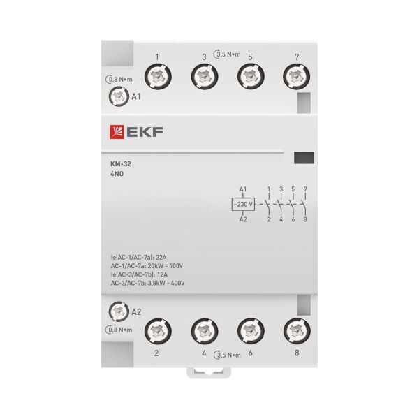 Модульные контакторы представляют из себя контактор в классическом корпусе модульного оборудования. Он состоит из неподвижных контактов, подвижных контактов, которые закреплены в подвижной части магнитной системы. Неподвижная часть магнитной системы закреплена жестко в корпусе КМ. Пружина препятствует смыканию контактов. При подаче напряжения на катушку управления в маг нитной системе контактора возникает магнитное поле, которое, преодолевая сопротивление пружины, смыкает магнитную систему и замыкает контакты. При отключении напряжения с катушки управления пружина размыкает контакты. Возможна коммутация алюминиевым и медным проводом.