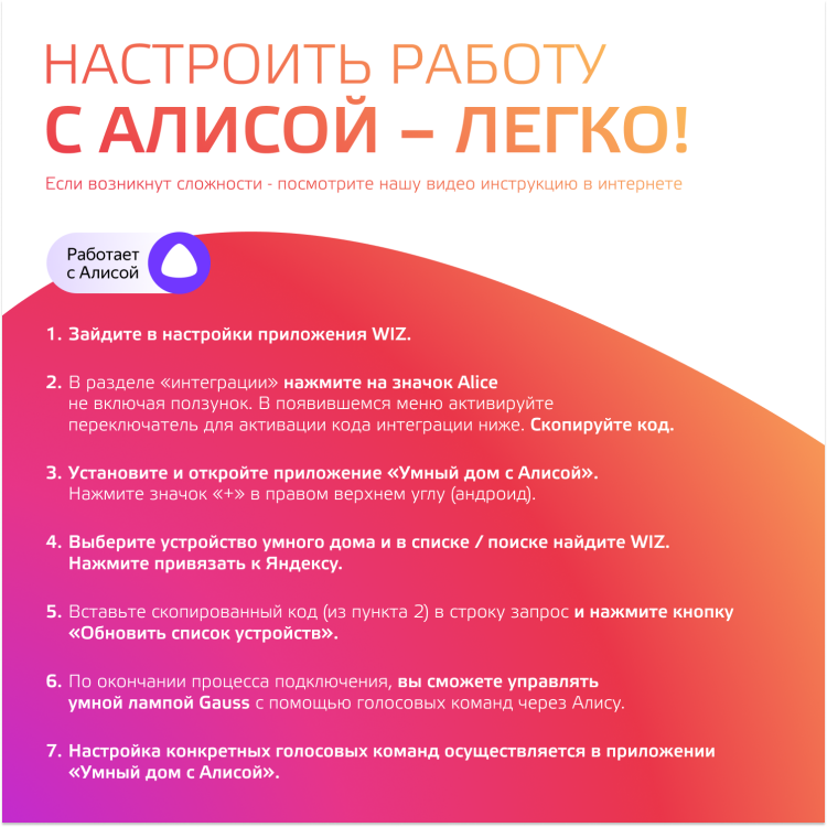 Дистанционное управление: управляйте светом через мобильное приложение или голосовой помощник (Алиса, Siri, Google, Маруся)