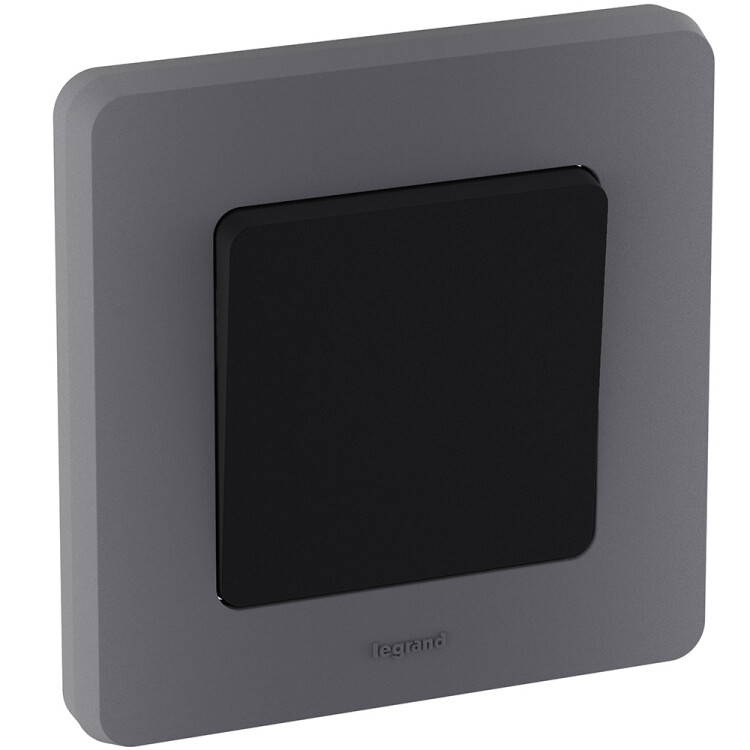 Выключатель одноклавишный скрытого монтажа Legrand/Daccord Inspiria, цвет "Антрацит", номинальный ток 10АХ, напряжение ~250В, безвинтовые зажимы.