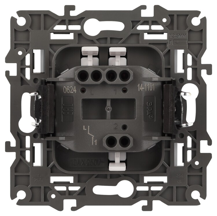 Выключатель 1-клавишный Эра Elegance белый 14-1101-01. Оснащён автоматическими клеммами для надёжной фиксации жил кабеля в механизме. Рамки приобретаются отдельно.