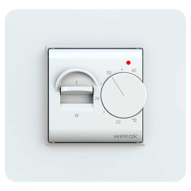 Welrok mex - механический терморегулятор с выключателем для систем теплого пола. Благодаря тумблеру вы можете отключить термостат, не меняя температуру.