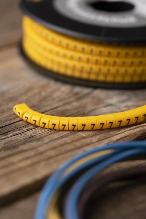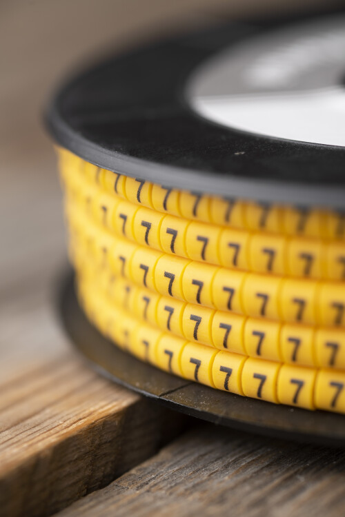 Пластиковый эластичный кабель-маркер EKF PROxima имеет на поверхности нестираемое обозначение цифр или букв. Он одевается на кабели и провода, чтобы присвоить проводнику обозначение. Например, произвести маркировку проводом по собираемой схеме, чтобы в дальнейшем всегда можно было идентифицировать участок собранной схемы и назначение проводника. С помощью комбинаций букв и ци фр с помощью кабель-маркеров можно присвоить проводникам любые удобные для вас обозначения.