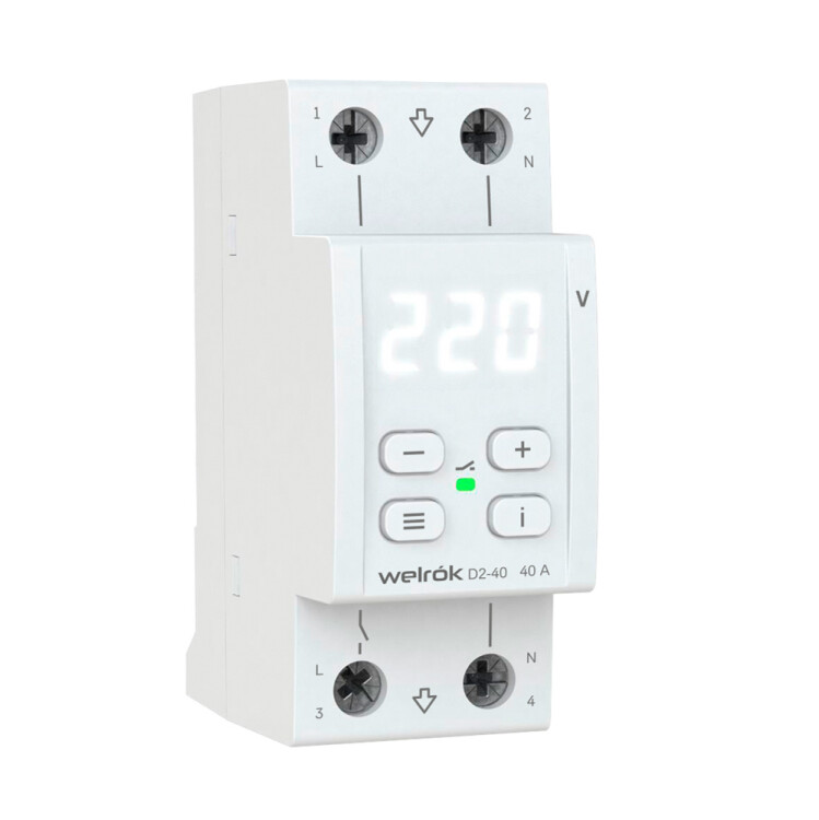 Реле напряжения Welrok D2 защищает оборудование от скачков и провалов напряжения, обрыва нулевого провода. Реле отключает нагрузку, если сетевое напряжение выходит за установленные пределы. Когда значение напряжения вернется в норму, нагрузка будет автоматически включена обратно.