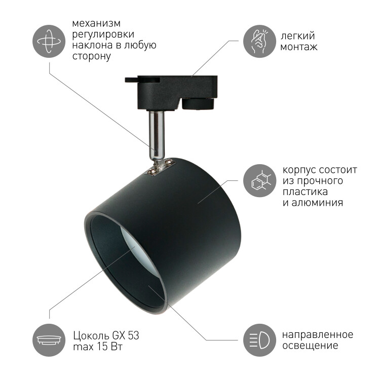 ЭРА Трековый светильник однофазный TR15 GX53 BK/SL под лампу GX53 черный/серебро