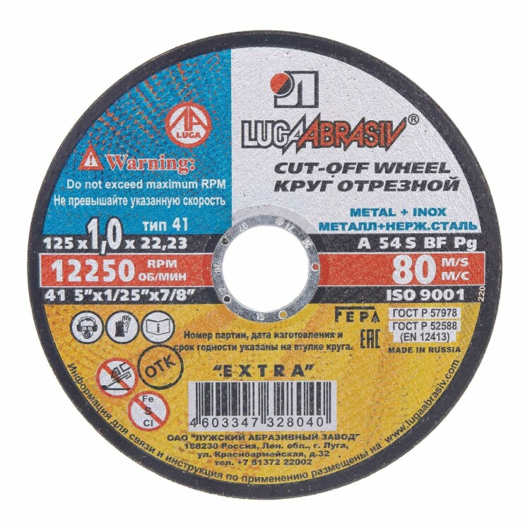 Круг отрезной Луга D11001252210000 предназначен для ручных резчиков. Применяется для высокопроизводительной резки деталей и конструкций из различных марок стали и быстрорежущей стали. Круг особенно эффективен при резке тонкостенного профиля и листового металла.