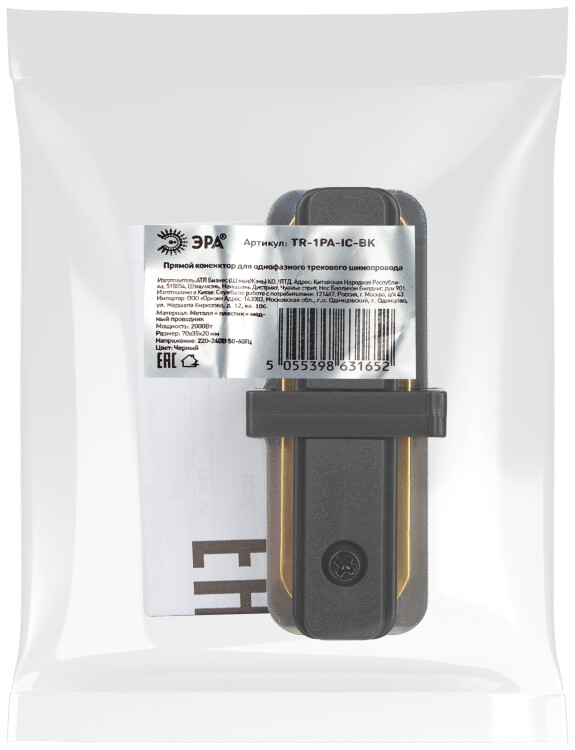 ЭРА Коннектор питания TR-1PA-IC BK для однофазного шинопровода прямой черный
