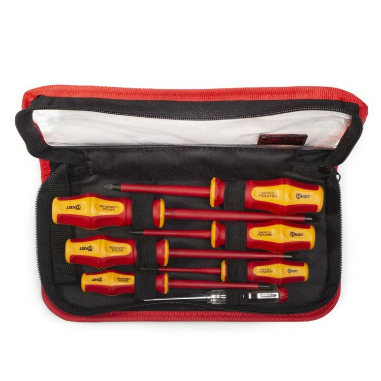 Для работ под напряжением до 1000 В;Двухкомпонентные эргономичные рукоятки с мягкими прорезиненными вставками;Маркировка на торце рукояток с обозначением типа профилей;Специальная форма рукояток, не позволяющая инструменту скатываться с наклонной поверхности;Стержни из хром-ванадиевой стали;Намагниченные вороненые наконечники;Упаковка: кофры на молнии с прозрачной крышкой;