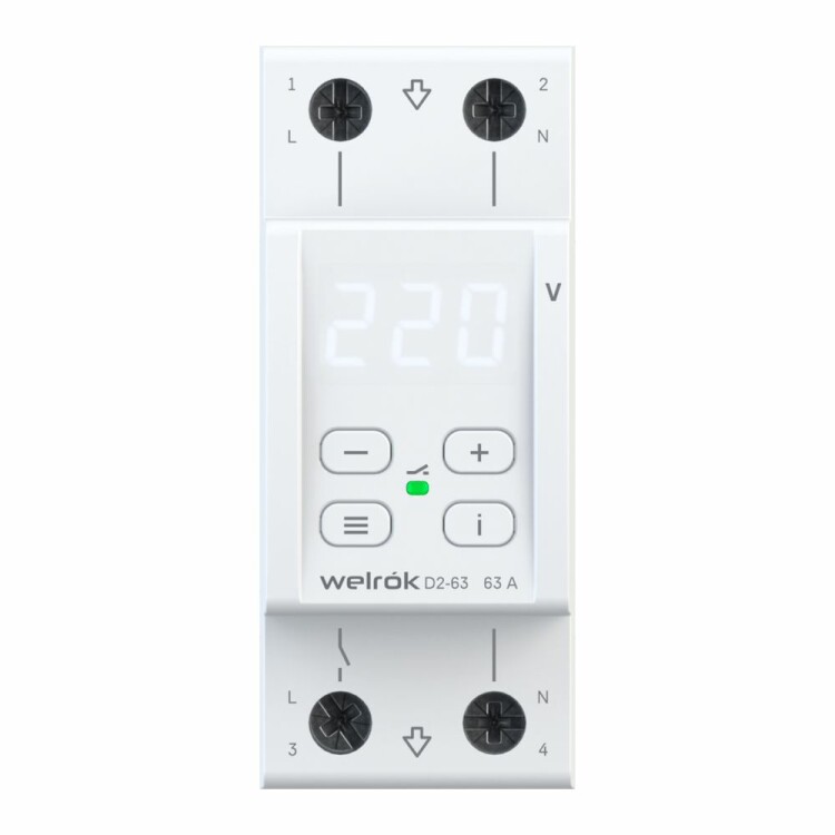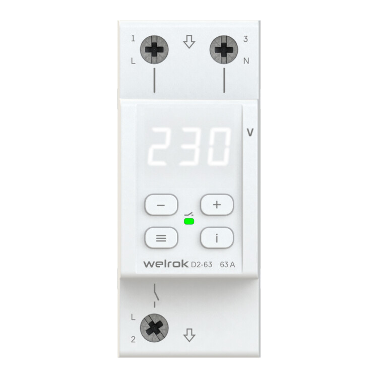 Реле напряжения Welrok D2 защищает оборудование от скачков и провалов напряжения, обрыва нулевого провода. Реле отключает нагрузку, если сетевое напряжение выходит за установленные пределы. Когда значение напряжения вернется в норму, нагрузка будет автоматически включена обратно.