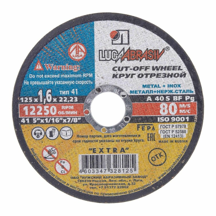 Диск отрезной по металлу 125х2,0х22,2мм Луга