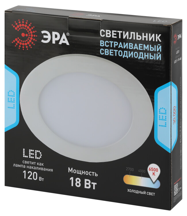 ЭРА Светильник светодиодный встраиваемый Даунлайт LED 1-18-6K/1 Slim панель 18Вт 6500К круг