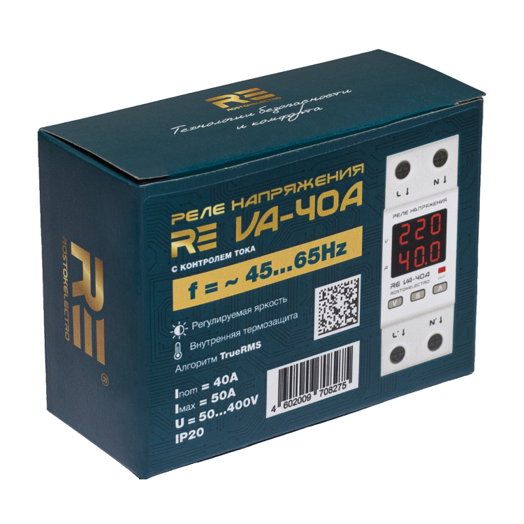 Реле напряжения с защитой от перегрузок по току RE серии VA предназначено для защиты электрического оборудования от скачков напряжения в сети, обрыва нулевого провода и превышения тока в цепи потребителей. Реле напряжения RE серии VA может работать как с бытовой электросетью с частотой 50Гц, так и источниками напряжения с нестабильной «плавающей» частотой (генераторы и др.). Для этого в меню настроек нужно выбрать соответствующий режим работы. Эти приборы существенно увеличивают срок эксплуатации бытовой техники и прочего электрооборудования. Прибор не имеет аналогов, совмещая в себе функционал нескольких устройств: реле напряжения; реле тока (ограничителя мощности). амперметра; вольтметра; ваттметра
