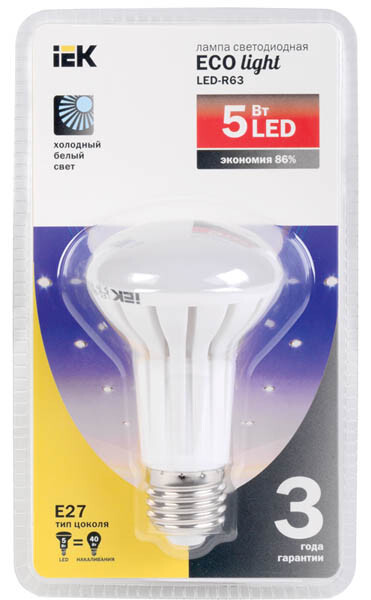 IEK Лампа светодиодная R63 рефлектор 5 Вт 400 Лм 230 В 4000 К E27 -eco