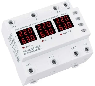 Реле контроля напряжения и тока трехфазное 63А RE VA3F-63А